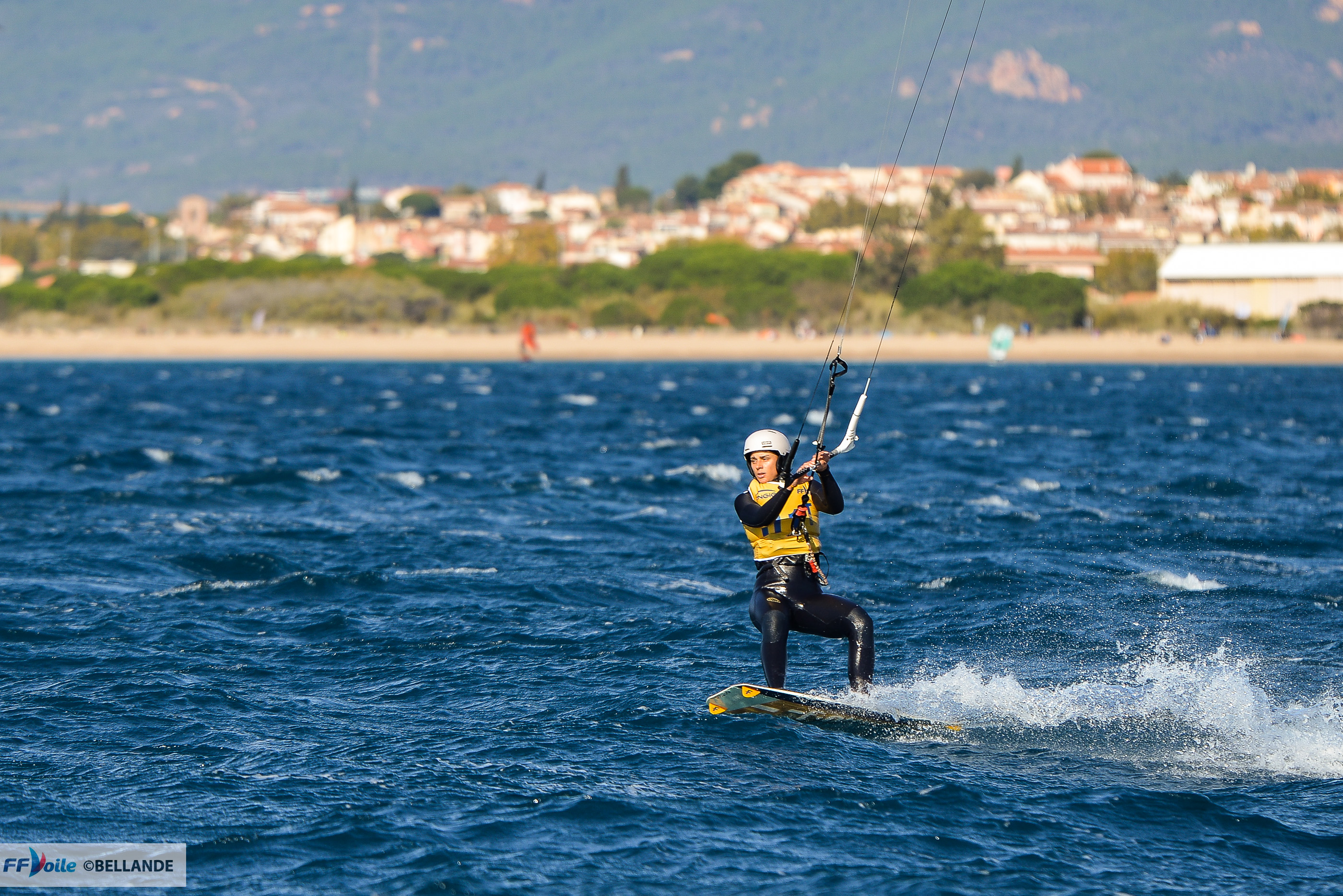 Lors de ma première épreuve, au Cap d’Agde, j’ai navigué avec une 17m2 (sourire)… J’ai cru que je n’allais jamais sortir ! J’ai finalement réussi à terminer l’épreuve. A Fréjus, je suis sortie en 6m2 et j’ai cru que j’allais aller au tapis ! J’ai réussi à finir là encore, même si j’ai dû déclarer forfait pour l’une des courses car je ne tenais pas mon aile… J’ai donc vécu un peu les deux extrêmes, niveau conditions de vent.