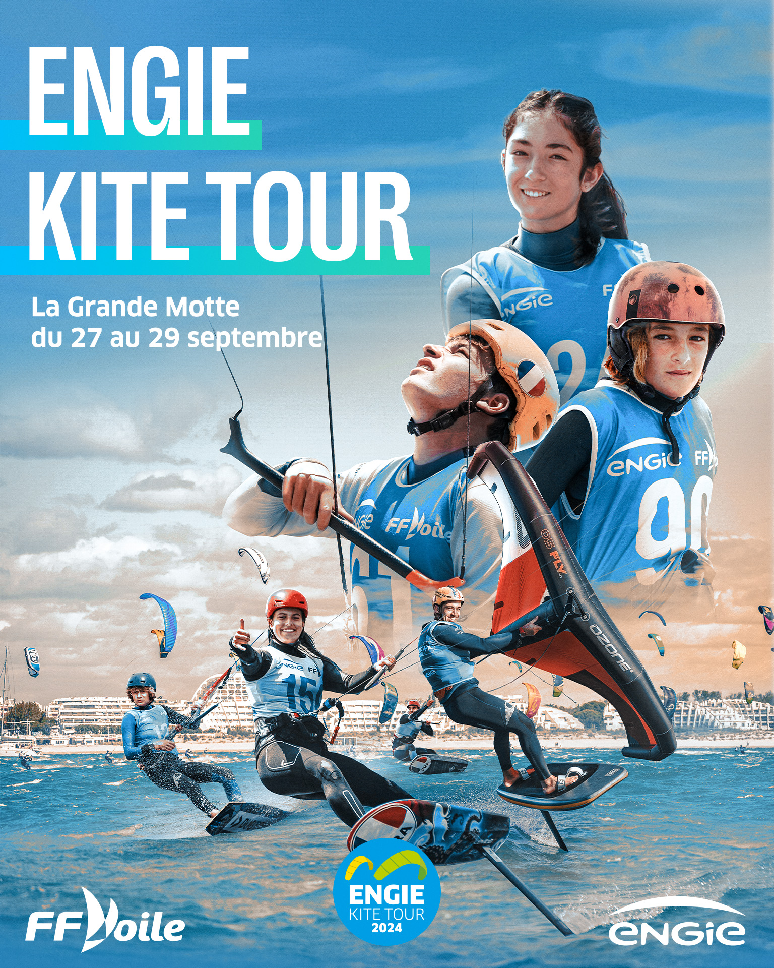 Après trois belles étapes très disputées à Fréjus, Lorient – Larmor-Plage et Le Touquet-Paris-Plage, tous les regards sont désormais tournés vers La Grande-Motte, où se jouera la Grande Finale de l’ENGIE Kite Tour 2024 du 27 au 29 septembre prochains. A quelques jours du dénouement de la saison, les riders sont dans les starting-blocks, prêts à en découdre sur un spot réputé pour la pratique du kiteboard et du wingfoil.